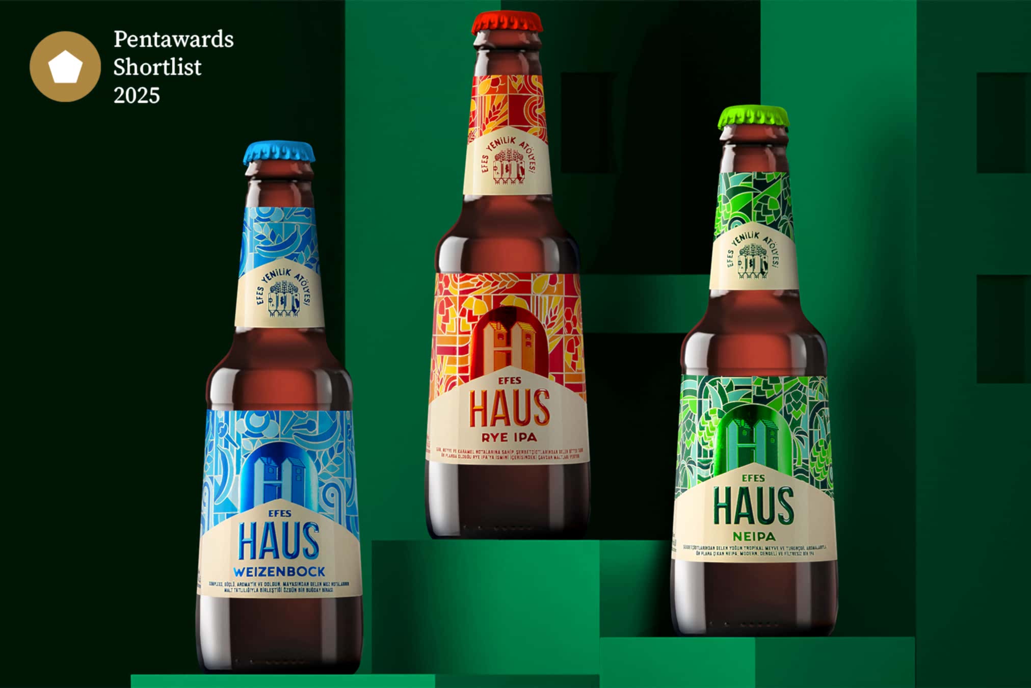 With our Efes Haus craft beer packaging designs, we’ve made it to the shortlist of Pentawards 2025, one of the world’s most prestigious packaging design competitions!